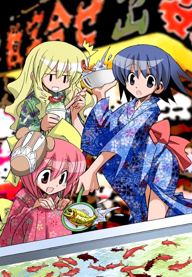 驚くセルナのボウルから梔のかき氷に金魚がポチャリ。